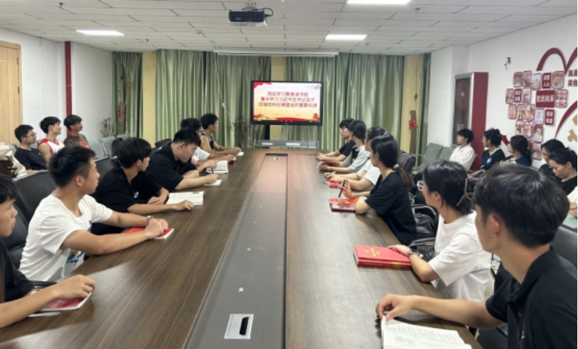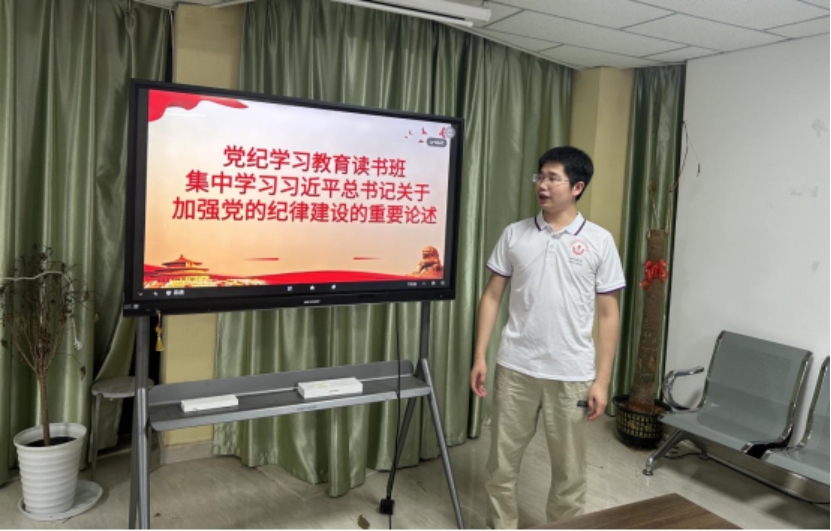 会上学生支部书记张涛领学了习近平总书记关于加强党的纪律建设的重要论述及警示教育片,张涛谈到,党的纪律建设永远在路上,支部上下要以本次专题读书班为起点,抓深学习研讨、抓严警示教育、加强宣传引导,把开展党纪学习教育与持续整治形式主义紧密结合起来。