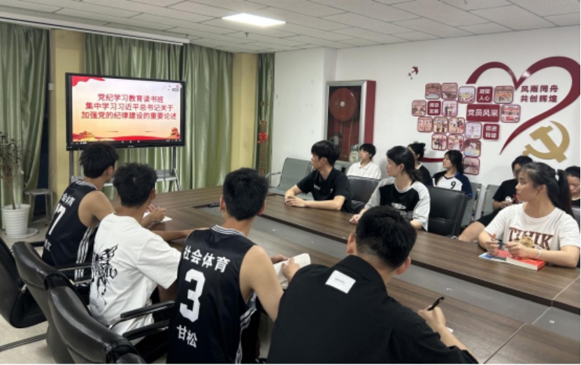 为深入学习习近平总书记关于党纪学习教育的重要讲话和重要指示精神,切实提升党纪学习教育质量和水平。5月16日,体育学院学生党支部在体育馆党员活动室组织开展党纪学习教育读书班集中学习学习习近平总书记关于加强党的纪律建设的重要论述。学生党支部书记张涛、组织委员雷斯亮、宣传委员何跃元、全体学生党员、预备党员、发展对象及入党积极分子参加会议。学习会由学生党支部书记张涛同志主持。