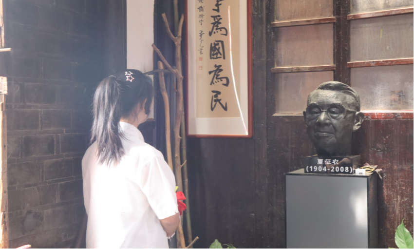 “半是战士半书生,一行政治一行诗”。大家怀着崇敬的心情跟随讲解员的脚步,走进了夏征农生平事迹馆。
