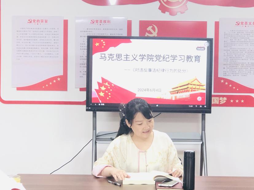 为进一步深入学习贯彻《中国共产党纪律处分条例》,6月4日,马克思主义学院全体党员学习了《中国共产党纪律处分条例》中关于对违反廉洁纪律行为的处分。
