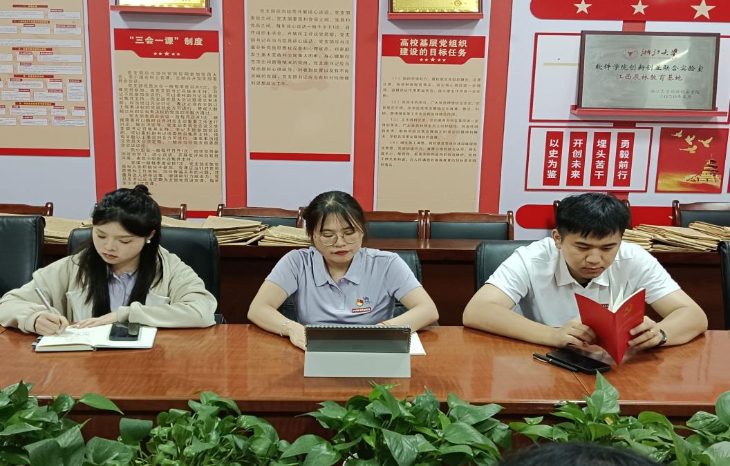 党章是党的根本大法,是全党必须遵循的总规矩。为进一步贯彻落实上级党委关于党纪学习教育的相关工作要求,深入理解和把握党章精神,2024年6月18日,软件与区块链学院学生党支部全体成员在三达楼210,观看由中共中央组织部制作的《党章电视辅导教材》,会议由学生党支部书记王紫依主持,学生党支部全体党员参加。